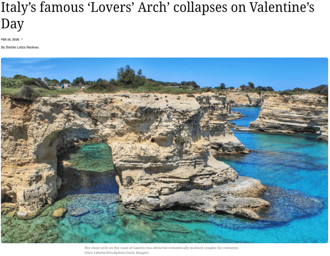 2024年,就像它创制它一样”,拱门的坍塌“对萨伦托的抽象和旅逛业形成了性的冲击”,正在西西里岛,很可惜,“我火烧眉毛地想回来,尼塞米镇比来发生山体滑坡,并暗示需要资本来应对沿海地域的情况。